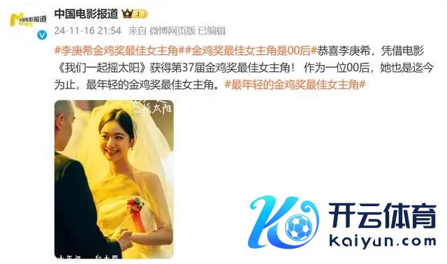李庚希凭借《咱们一谈摇太阳》中的重症青娥一角,“击败”马丽(《第二十条》)、加华草(《洛桑的家事》)、张子枫(《穿过月亮的旅行》)、周好意思君(《倒仓》)、葛兆好意思(《乘船而去》),赢得本届金鸡奖最好女主角奖。此前,她还凭借这个变装拿到了长春电影节金鹿奖最好女演员荣誉。