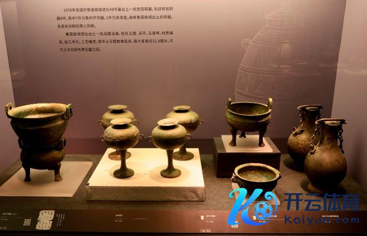 展出的一组鲁国故城古迹出土的青铜器。