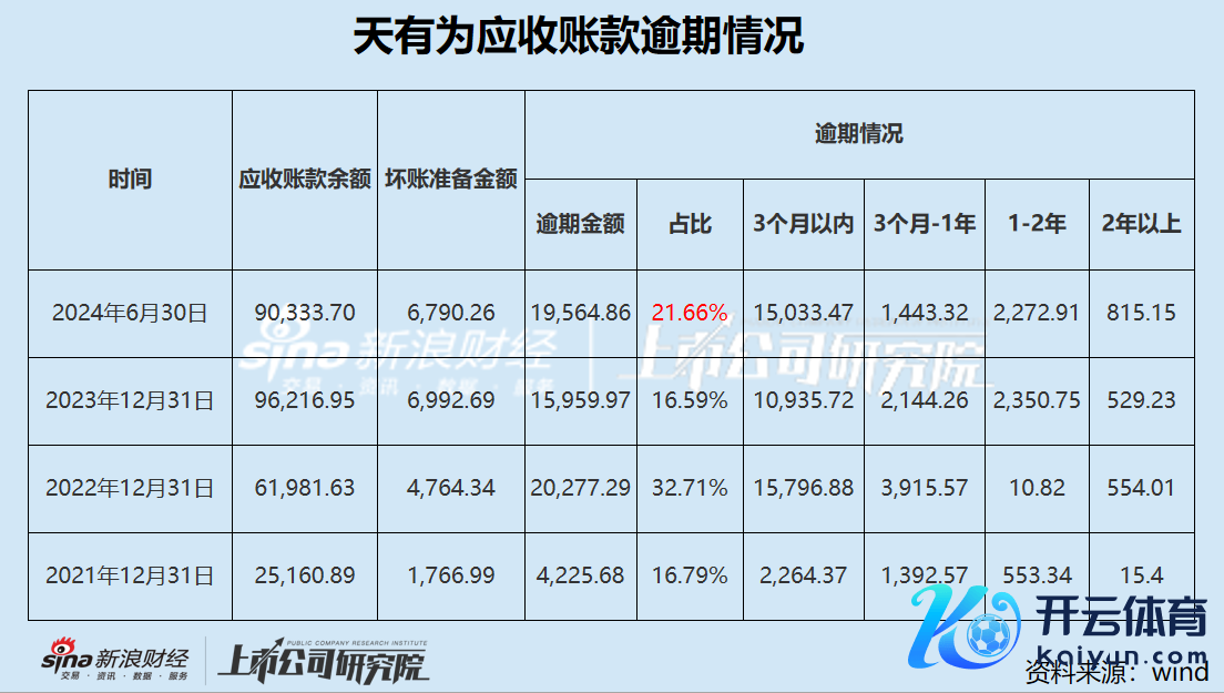 收敛本年6月底,天有为应收单据、应收账款及应收款项融资的账面价值永诀为4033.30万元、83543.44万元和25505.37万元,臆测高达11.31亿元,较2023年同时加多了3.32亿元,同比增长41.62%,跳跃营业收入增速。其中,应收账款账面余额为9.03亿元,占营业收入的比例为44.29%;应收账款过时金额为1.96亿元,过时比例为21.66%。
