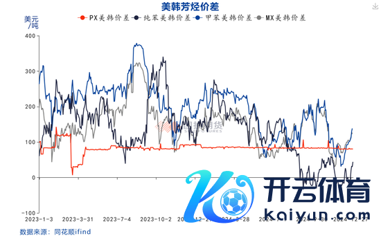 PX-原油价差走势不错合计是一体化PX的利润推崇,当今依旧处于偏低位,从往年的季节性走势看,一季度PX-原油价差每每会季节性走高,背后是一季度中后期至二季度亚洲地区真金不怕火厂考研带来的PX开工率的下滑及亚洲甲苯、二甲苯等高辛烷值组分季节性向好意思国商场出口。面前好意思国的汽油归并组分库存处于偏低水平,且调油商有补库的迹象,伴跟着好意思韩芳烃价差的回升。预期亚洲地区的芳烃商场心扉会逐渐好转,以甲苯、二甲苯为原料的短经由PX坐褥效益下滑。
