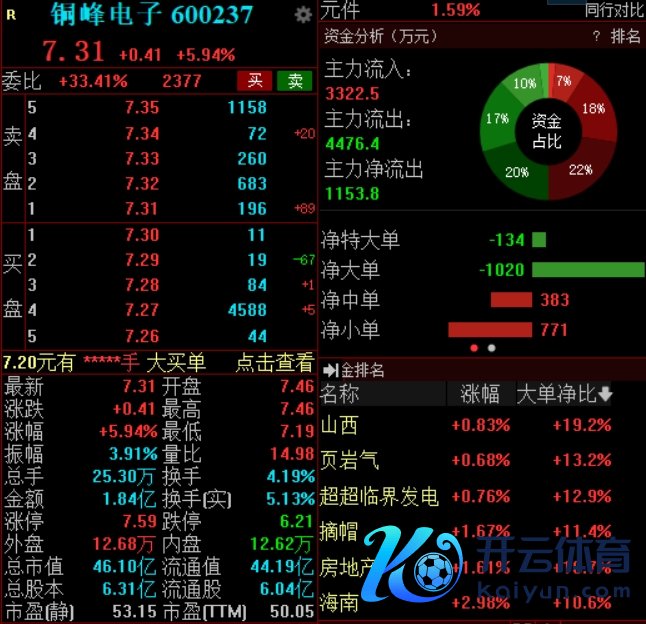 2月7日,铜峰电子大幅高开,扫尾发稿,该股涨近6%,成交额1.84亿元开yun体育网,换手率4.19%。